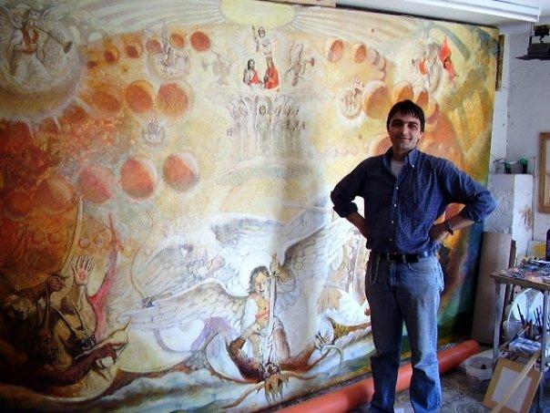 Alongside monumental projects, the artist maintains a strong practice in easel painting — portraiture, figurative composition, and sacred themes. His works combine classical technique, psychological depth, and contemporary symbolic thinking.