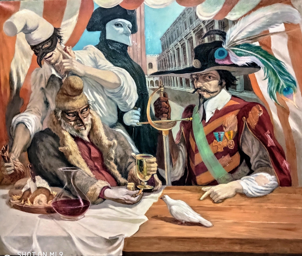 During his academic years he was awarded a scholarship by the City of Venice and began working with the historic Venetian aristocratic family Conti Marcello del Majno — a lineage historically connected with masters such as Giorgione, Titian, Tintoretto, Tiepolo, and Veronese. For the family he created portraits and paintings integrated into Venice’s cultural and historical environment.
